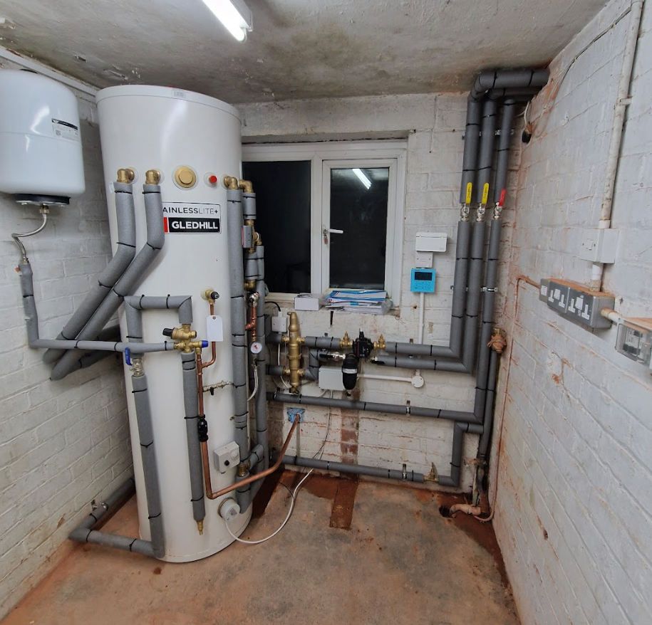 This is a large domestic property requiring over 250L of hot water. We made perfect use of this outbuilding to cater for such a huge demand of hot water