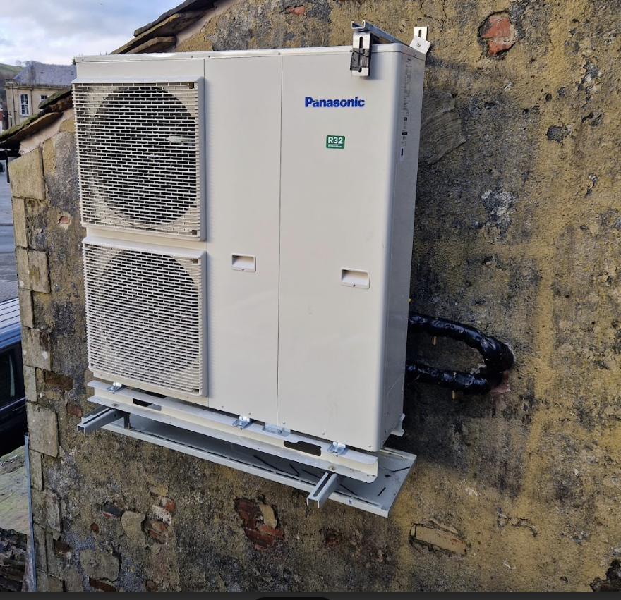 Heat pumps require a certain amount of space to perform efficiently, when space is limited we have to look at alternative installation methods and locations. We believe this wall mounted system was a good alternative.